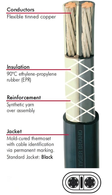 الاختيار الدقيق لتصميم تجديل موصلات النحاس في كابل TYPE W FLAT 2/C ليس تفصيلة ثانوية. استخدام 133 خيطاً نحاسياً في تكوين 7×19 للمقطع 8 AWG، ووصولاً إلى 532 خيطاً في تكوين 19×28 للمقطع 4/0 AWG، هو قرار هندسي مبني على فهم عميق لميكانيكا إجهاد المعادن.