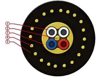 يتكون مركز الكابل من عنصر دعم مركزي مصنوع من مواد مركّبة عالية الصلابة المحورية مع احتفاظها بمرونة جانبية مناسبة. يعمل هذا العنصر على توزيع قوى الشد المحورية بشكل متساوٍ، مما يمنع انتقال هذه القوى إلى الألياف الزجاجية الدقيقة في الداخل — وهو ما يُعدّ الأساس الأول في حماية الأداء الضوئي للكابل على المدى البعيد.