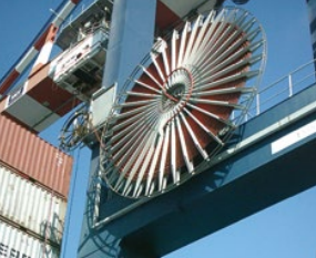 أوناش RMG (Rail Mounted Gantry) وأوناش ERTG (Electric Rubber Tyred Gantry) تعمل في ساحات التخزين وتتميّز بتنقلها المستمر على مسارات طويلة، مما يعني أن كابل التغذية يُعيد اللف وينسحب بشكل دائم وبإيقاع سريع. هذا بالضبط هو التطبيق الأصعب الذي يظهر فيه الفارق الحقيقي بين الكابل المتخصص وغيره، إذ تتراكم الإجهادات بمرور الوقت في الكابلات غير المُصمَّمة لهذا الغرض لتنتهي بأعطال يصعب التنبؤ بتوقيتها.
