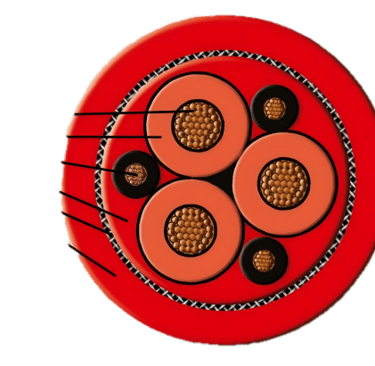 الغلاف الخارجي من بولي كلوروبرين (Polychloroprene): يُغلّف الكابل من الخارج مطاط البولي كلوروبرين المكافئ للمعيار 5GM5، وهو مادة مثبتة الأداء في أشد بيئات العمل قسوةً. يتميز هذا المطاط بمقاومته الاستثنائية للالتوار والاحتكاك الخارجي، وكذلك مقاومته للزيوت والمذيبات الصناعية والأشعة فوق البنفسجية والماء، فضلاً عن قدرته على تحمّل الضربات والصدمات الميكانيكية.