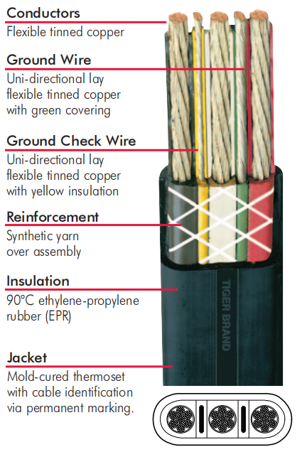 ما يميز كابل TYPE G-GC FLAT 3/C في بيئات التعدين القاسية ليس خاصية واحدة — إنه تضافر منظومة من الخيارات الهندسية المبنية على أساس علمي صلب. عزل الـ EPR يوفر الاستقرار الكيميائي والحراري في مواجهة الأحماض والحرارة والرطوبة. الغلاف الثيرموسيت المعالج حراريًا يوفر الدرع الميكانيكي والكيميائي ضد الزيوت والتآكل والصدمات. الموصلات النحاسية عالية الجدل المطلية بالقصدير توفر المرونة اللازمة للانثناء المتكرر والمقاومة في آنٍ واحد. وسلك فحص التأريض يوفر طبقة الحماية الكهربائية الاستباقية التي تحفظ أرواح العاملين.