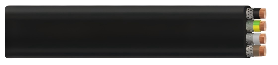 الغلاف الخارجي من مطاط ثقيل الخدمة نوع 5GM3 وفق DIN VDE 0207-21، باللون الأسود مع طباعة بالحبر النفّاث (Inkjet Marking) لضمان قابلية التتبع وسهولة التعريف في الموقع.