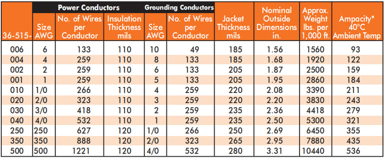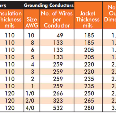 EPR is the material of choice for mining cable insulation for good reason. It maintains its dielectric properties across a wide temperature range, resists moisture absorption far better than polyethylene-based compounds, and remains flexible in cold mine environments. The 90°C continuous conductor temperature rating ensures adequate current-carrying capacity even in warm or poorly ventilated headings. Insulation thickness increases with conductor size to maintain the required dielectric strength at 5,000 volts across all size ranges from 6 AWG through 500 kcmil.