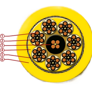 The most prevalent mistake. Standard end-feed or centre-feed power and control cables are engineered to resist torsion as a secondary characteristic. A vertical reeling cable requires a fundamentally different internal architecture — class 6 ultra-fine copper conductors, a reinforced central support element, and an anti-torsion braid embedded between the inner and outer sheath — to prevent corkscrew deformation and core breakage under sustained gravitational tensile loading.