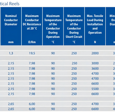 Bending radius is critical in reel applications because the cable is repeatedly bent to the same radius every operating cycle. For low voltage cables with an overall diameter greater than 40 mm used on drum reels, the recommended minimum bending radius is 8 times the overall outside diameter (8 × OD). For cables with an OD of 40 mm or less, the figure reduces to 7 × OD. Specifying a reel drum that imposes a tighter radius than this will cause insulation fatigue and eventual core-to-core breakdown, regardless of how well the cable is manufactured. The reel design must be confirmed before cable selection is finalised.