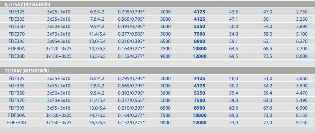 Q: What is the expected service life compared to standard cables? A: Under equivalent reeling duty, (N)TSCGEWÖU cables have demonstrated service lives two to four times longer than standard medium voltage flexible cables in operational crane installations. Actual service life depends on reel geometry, reeling speed, tensile load, and environmental conditions specific to each installation.