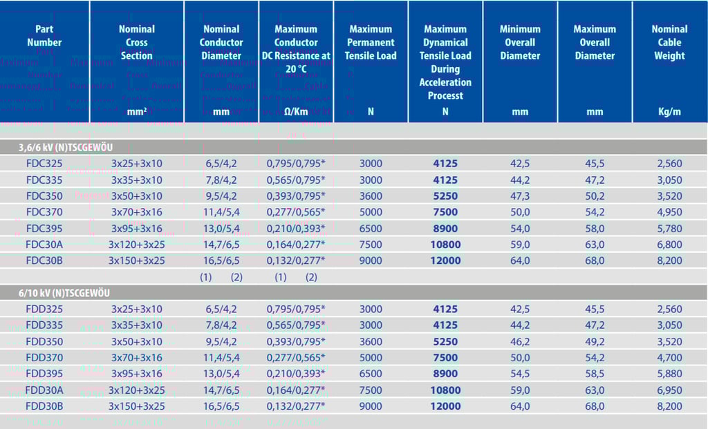 Q: What makes (N)TSCGEWÖU different from a standard medium voltage flexible cable? A: Standard medium voltage flexible cables are designed for static or semi-static installation with occasional repositioning. They lack the anti-torsion reinforcement layer, the high-fatigue conductor stranding, and the abrasion-resistant elastomer sheath system that define (N)TSCGEWÖU. Deployed in a crane reeling application, a standard flexible cable will typically develop corkscrew deformation and conductor fatigue fractures within months. The VDE 025 construction addresses each failure mode systematically.