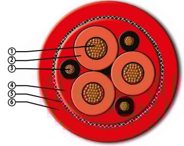 The insulation system uses Hard Ethylene Propylene Rubber (HEPR), a crosslinked elastomeric compound that combines the electrical performance of EPR with enhanced mechanical resilience. Unlike thermoplastic XLPE insulation — which can crack under repeated flexing and is sensitive to deformation at elevated temperatures — HEPR maintains its dielectric integrity and physical geometry across the full operating temperature range of −20 °C to +60 °C.