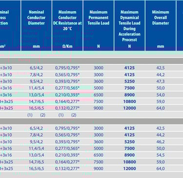 Specifying the correct (N)TSCGEWÖU cable for a given crane installation requires careful evaluation of several interrelated parameters. Drum diameter and drum design determine the minimum bending radius the cable must sustain in service — this sets a constraint on the cable outer diameter and flexibility class. Travel length and reeling speed define the tensile load profile and the number of bending cycles accumulated per unit time, which in turn determines the required fatigue life. Torsion cycle count is a function of travel distance and reel configuration. Voltage class and conductor cross-section are determined by the crane's power demand and supply voltage. Environmental exposure — temperature extremes, UV intensity, chemical contamination — governs sheath compound selection.