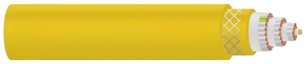 The outer sheath uses the same 5GM5 extra heavy-duty rubber compound, coloured yellow for visibility and equipped with inkjet marking for identification. This sheath is the cable's primary defence against abrasion from drum contact, mechanical impact, and environmental exposure.