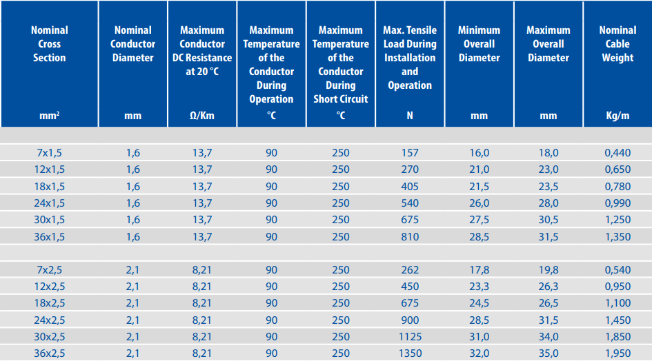 Current-carrying capacity is assessed in accordance with VDE 0298-4, which provides the de-rating factors applicable to cables installed on reeling drums and in bundled configurations. The thermal performance of the EPR-grade insulation supports sustained current loading without accelerated ageing, ensuring that control and power circuits remain within their rated parameters across the operational lifespan of the cable.