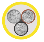 Outer sheath — the most visible element of the cable — is heavy duty rubber compound type 5GM5 per DIN VDE 0207-21, coloured yellow with inkjet marking. The 5GM5 designation represents the highest mechanical performance class in the DIN standard for rubber sheaths, combining high abrasion resistance, impact resistance, and resistance to tearing. Yellow colouring provides visual identification as a mining cable and, critically, makes the cable visible on the ground in low-light underground conditions.
