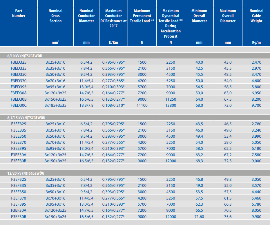 The (N)TSCGEWÖU ES3 represents the current state of the art in medium voltage reeling cable design for high-speed port crane applications. Its combination of reduced weight, compact diameter, HEPR insulation with extruded semiconducting screens, proven anti-torsion architecture, and optional LSZH fire-safe outer sheath addresses every major failure mechanism and design constraint that crane cable engineers face in monospiral end-feed reeling systems. Rated for 200 m/min operation, compliant across voltage classes from 3.6/6 kV to 12/20 kV, and capable of sustained flexing service down to −35 °C, it provides a technically complete solution for STS, RMG, RTG, and bulk handling crane installations worldwide. For terminals investing in long-term crane reliability, reduced maintenance cost, and fire-safe infrastructure, the ES3 is the engineering choice that delivers across every dimension of service performance.
