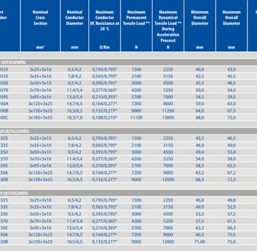Q: What conductor cross-sections and voltage ratings are available for the 6/10 kV reeling cable version? A: The 6/10 kV version of the ES3 is available across the standard conductor cross-section range applicable to port crane power supply requirements. For specific cross-section availability and current-carrying capacity data referenced to VDE 0298-4, the manufacturer's technical datasheet should be consulted, as configurations vary by project requirements.