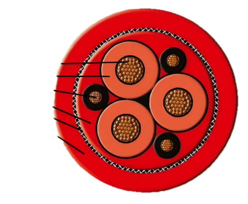 Insulation integrity under dynamic bending conditions is maintained through the use of high-elongation EPR — commonly referred to as HEPR — compound applied over each conductor. HEPR maintains its elastic properties across a wide temperature range and resists the micro-cracking that thermoplastic and standard rubber insulations can develop under repeated flexing. In combination with the extruded semiconducting screen layers applied both beneath and over the HEPR insulation, a stable and continuous electric field is maintained around each conductor. This eliminates the localised field concentration that lapped tape screens can introduce, particularly once the tape begins to lift or shift under repeated mechanical stress.