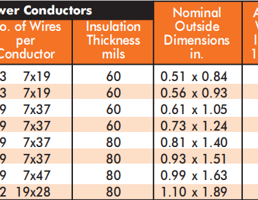 The insulation thickness and jacket construction of TYPE W FLAT 2/C cable — with insulation thickness of 60 mils for sizes up to 1 AWG and 80 mils for larger sizes — provides the mechanical protection needed in drill cable applications while keeping the cable light and flexible enough to handle without fatigue.