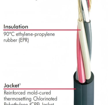 Conductor sizes across the product range span from 8 AWG through 4/0 AWG, giving engineers the flexibility to size the cable appropriately for load current requirements and the distance from the power center to the equipment.